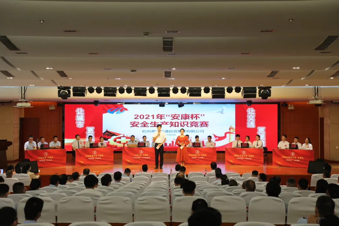 集團2021年“安康杯”知識競賽活動分預(yù)賽、決賽兩個環(huán)節(jié),采用“理論筆試+現(xiàn)場競答”形式進行。共有12支隊伍參加競賽。經(jīng)過9月18日預(yù)賽晉級選拔,交投出租車公司、機場高速公司、公交公司、交投能源公司、浦陽江開發(fā)公司、長運公司六支代表隊順利進入決賽,角逐前三名。