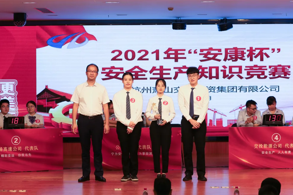為宣傳貫徹新《安全生產(chǎn)法》,普及安全生產(chǎn)法律法規(guī),培育安全生產(chǎn)法治文化,營造學(xué)法用法守法濃厚氛圍,增強全員安全責(zé)任意識,打造“平安交投”品牌形象,9月28日下午,集團2021年 “安康杯”安全生產(chǎn)知識競賽決賽舉行。集團黨委副書記、總經(jīng)理徐寧軍,黨委委員、紀(jì)委書記郭維濤,副總經(jīng)理鐘波出席會議并擔(dān)任評委。集團各部室負責(zé)人,所屬各單位黨組織、行政負責(zé)人,安全生產(chǎn)分管負責(zé)人及相關(guān)管理人員、一線職工代表150余人觀摩競賽。