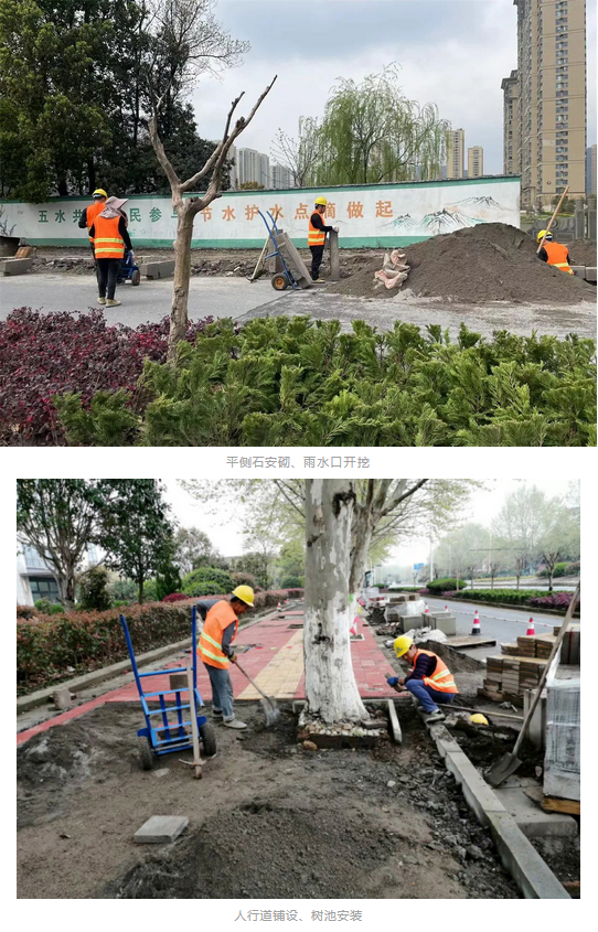 平側(cè)石拆除和安砌、人行道拆除已全部完成;人行道鋪設1195平方米,占總量的10.5%;雨水口新增全部完成。