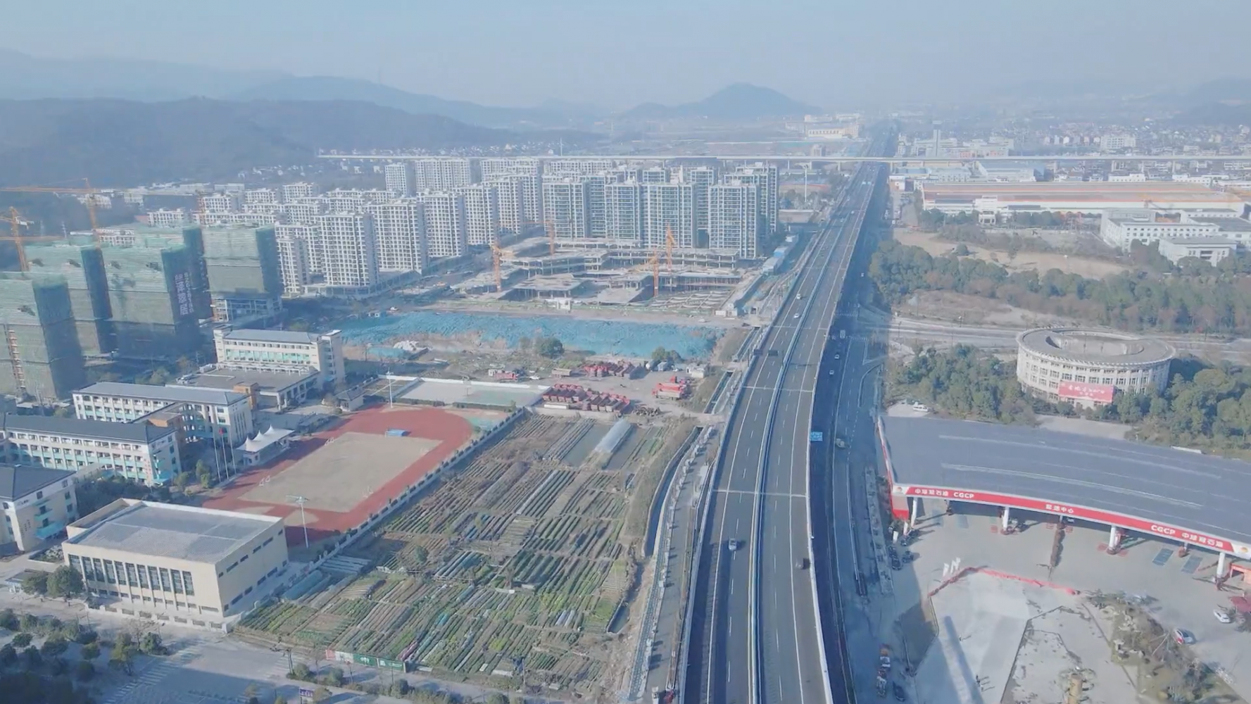 項(xiàng)目起于義橋鎮(zhèn)許賢加油站,終于河上鎮(zhèn)勝達(dá)包裝處,全長(zhǎng)約7.802公里,其中涉鐵段路段已由涉鐵施工單位建設(shè)完成,實(shí)際施工長(zhǎng)度為6.742公里。項(xiàng)目設(shè)計(jì)速度80公里/小時(shí),雙向6車道。