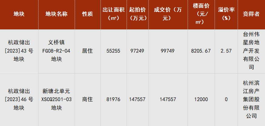 經(jīng)過1輪報(bào)價(jià),最終以起拍價(jià)成交,競得單位為杭州濱江房產(chǎn)集團(tuán)股份有限公司。