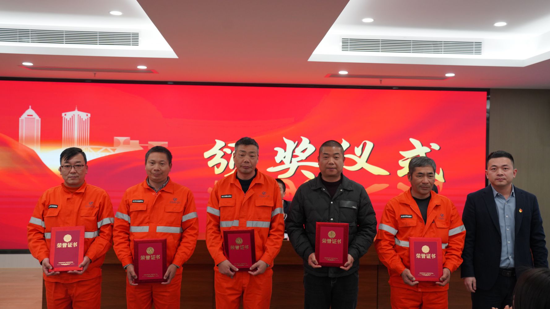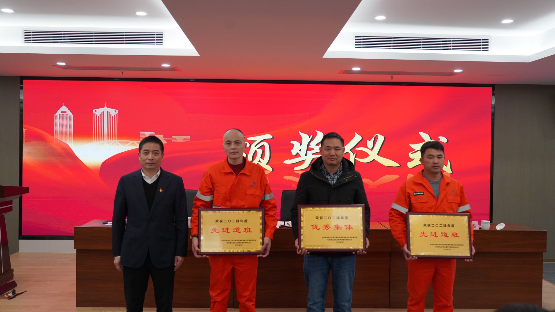 先進集體代表、先進個人代表、優(yōu)秀工會積極分子代表、敬業(yè)奉獻獎代表頒獎