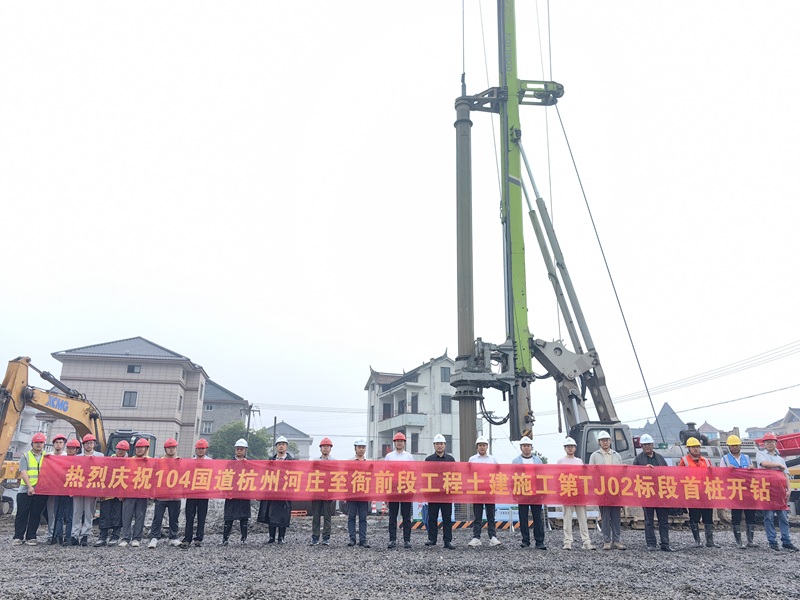 今天上午,104國道杭州河莊至衙前段工程第TJ02標首樁、第TJ01標二工區首樁開鉆,標志著104國道杭州河莊至衙前段工程全面開工。